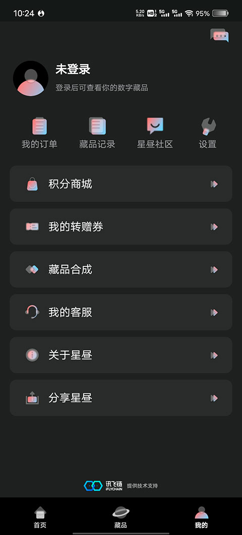 星昼APP官方版是由科大讯飞出品的一款基于区块链技术的数字藏品发售平台,界面清爽简洁,功能齐全,内置完善的用户账户系统,方便用户对软件内的资产进行管理。软件更新速度快,品种多样,可以满足不同用户的需求,为用户提供独特的数字内容,让大家在线就可以进行收藏观赏。此外,星昼APP官方版提供了安全的应用内支付功能,用户可以在这里购买唯一的,不可篡改、不可分割、不能替代的数字文化藏品,同时可以观赏、分享、收藏藏品,用户的藏品权益将被永久记录在区块链上,所以大家还在等什么,感兴趣的小伙伴赶快来下载体验吧。