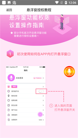 2、开启软件悬浮窗需要手机授权,点击立即授权按钮即可开启。