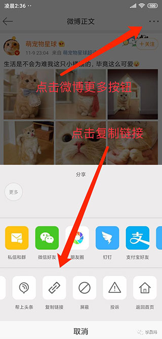 1、软件操作简单,小编以微博为例,其他平台类似,均为“复制链接”下载。