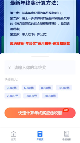 3、而在年终奖界面用户们也可以同上述的操作一样进行计算;