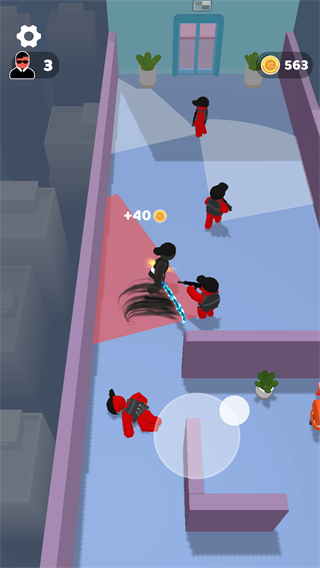 2、玩家需要避开守卫,注意观察守卫前的扇形区域,若区域为红色则说明你已经被守卫发现,绕后或许是一种不错的游戏策略,被发现了就及时躲避吧!