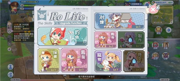游戏内小伙伴们点击主界面的生活按钮,可以看到目前游戏内一共拥有8种不同的生活玩法,其中制作玩法只有商人才可以玩,毕竟商人的职业特点就是制作特殊物品出售赚钱,而符文玩法暂时没有解锁,应该是在后期的版本当中上线,小伙伴正常角色可以体验到6种生活技能。