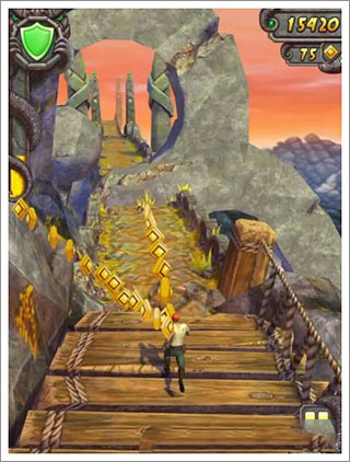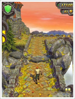 神庙逃亡国际服最新版是一款经典的无尽跑酷游戏,玩法上玩家将操控角色从有怪物的古庙开始逃亡,这个过程中你需要快速并熟悉运用跳跃、下滑、左右移动等操作,当然你也可以摇曳屏幕来收集金币提升能力,而随着游戏时间的推进,其速度也会越来越快,而这也就代表着将大大的提高玩家的可玩性与挑战性!总而言之,神庙逃亡这款游戏不但十分的经典,还相当的耐玩!