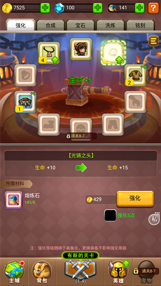 我认为是不错的冲塔选择,因为可以每回合加血,技能伤害也有回血的效果,间接的提高了你的生命值上限。主要技能有:武神重锤,爆裂一击,急行术,剩下的3个技能随boss特性搭配。