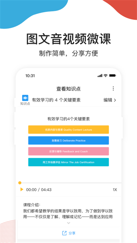UMU也是讲师的教学好帮手,帮助讲师模块化轻松创建课程使用UMU图文、音频、视频、微课、直播等方式,轻松萃取教学内容。UMU互动平台app,是您随身携带的创新互动平台。