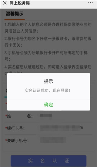 3、输入证件号码和姓名、点击“登录”;接着阅读提示并点击“确定”;