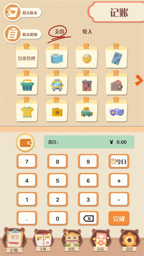 在萌帐app的记账功能下,输入数字就开始快速记账,同时还可以使用图标进行记录,这样可以更方便的让我们一目了然;同时还可以看到本月的账本明细,自己记录的所有支出、收入都能看到。