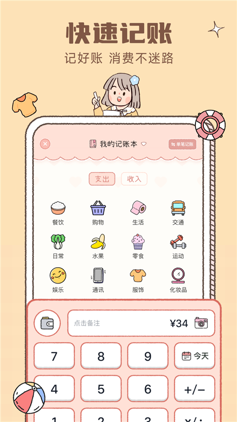 1、生活记账本:日常生活开销记录,分析消费情况,拒绝盲目消费;
