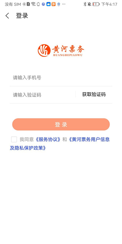 1、首先进入黄河票务app;点击我的然后点击登录;