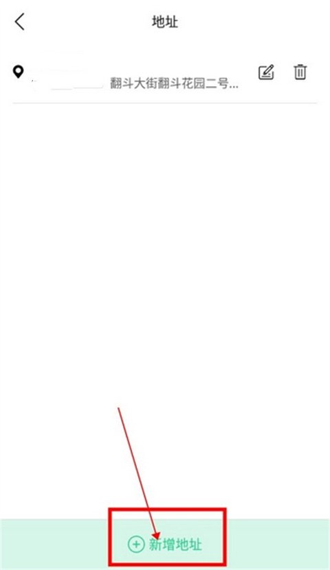3、跳转到【地址】页面后点击下方的【+新增地址】之后输入。