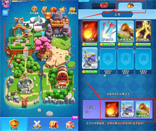 前往种植园,在法术界面中可依靠各种资源解锁法术,并可配置3种法术上场助战。