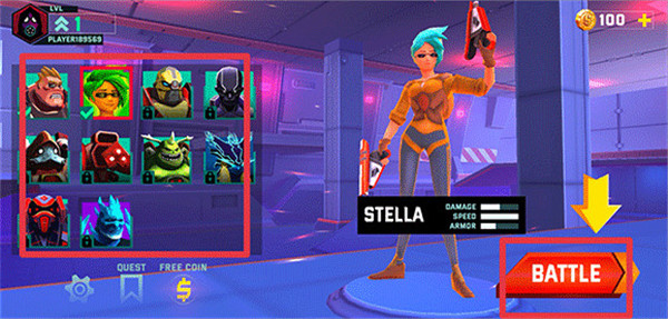 1、打开游戏后,在游戏开始界面选择你喜欢的任务角色后,点击BRTTLT。