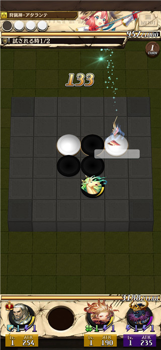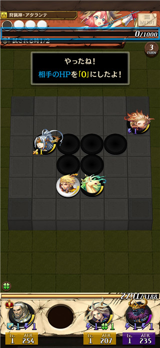 3、当玩家在棋局中将对方一条线上的棋子包住时,角色便会发动攻击,对方掉血。