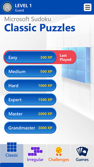 玩您挚爱的关卡,有 6 种难度任您选择!优雅,简练,同时又能激发智力。全新关卡时时生成,能让您在休闲时刻畅玩无数独特又经典的数独关卡