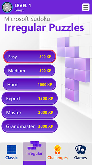 经典模式——玩您挚爱的关卡,有 6 种难度任您选择!优雅,简练,同时又能激发智力。不规则模式——尝试对于数独的全新演绎!一样的规则,大不一样的格子形状。