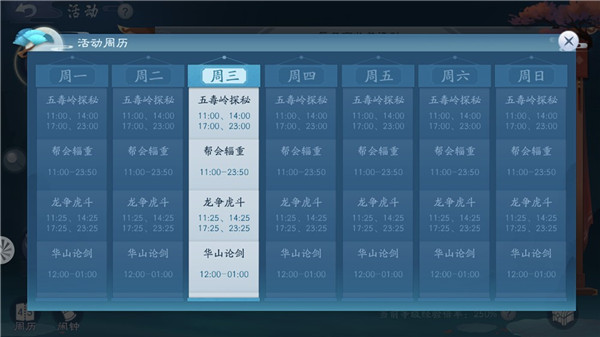 2、随着角色实力的不断增长,玩家将更多地自由参与到日常活动中来。当前,《新笑傲江湖》开放了大量日常活动,如一日游、寻龙探宝、江湖话本、门派修行、影宗悬赏、五霸岗除魔、门派授业等。此外,游戏中一周内还会在不同的时间段开放特殊限时活动,如五毒岭探秘、龙争虎斗、华山论剑。这些活动供玩家在探索笑傲大世界的同时,获取提升战力所必须的装备和物资、侠客等资源。