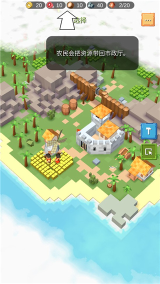 4、建立完成后,前往农场的农民会把资源带回市政府;