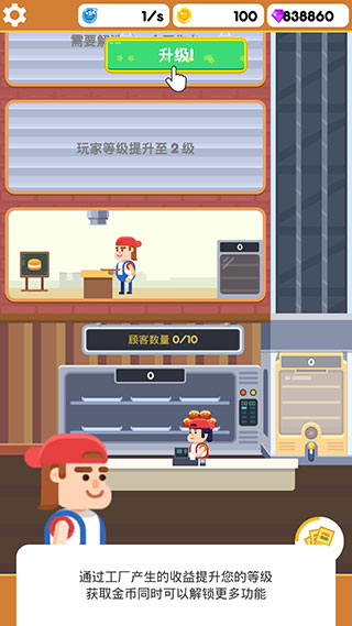 5、通过工厂产生的收益,可以提升您的等级,获取金币的同时还可以解锁更多功能。