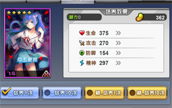 3、培养时,最好选择比例每1点潜力转化为2点有用属性,这样潜力点的利用率比较高。