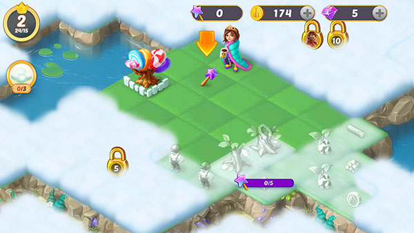拖放并合并三个或者以上的物品(相信我们,你肯定会喜欢越多越好!)就能带来惊喜,比如说树上掉下糖果,麦田里涌出各种各样的食材,还会有故事书里的英雄们出现!合并梳子召唤出长发公主,或者用洒水壶找来拇指姑娘。木制小棚能升级成舒适的小屋,甚至是适合皇室使用的城堡。请记住,在合并童话国里,你才是真正的头戴皇冠的主人。