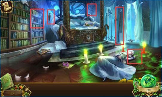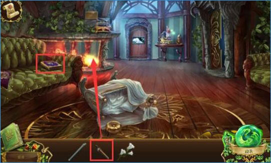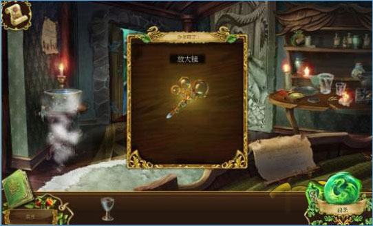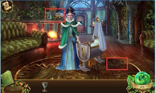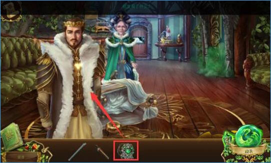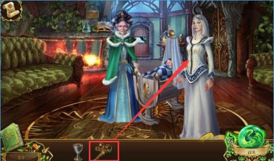 5、点击门口,跟着皇后的继母我们来到了客厅,首先用放大镜为皇后查看一下,看到她眼睛和手都不太正常。