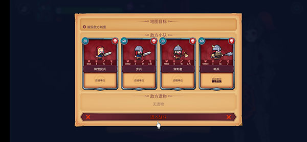 5、我们需要知晓地图目标、敌方小队、敌方的遗物,然后点击进入战斗。