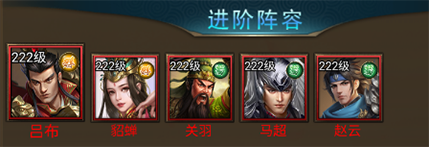 阵容分析:吕布和貂蝉是搭配的群体攻击和先手组合,同时能触发阵型加成。关羽、马超、赵云都是强力的输出,并且本身肉度不低。重要的是这些武将都可以通过购买VIP礼包达到很高的星数。