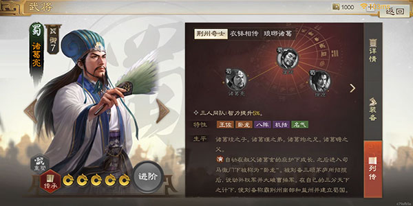 6、光有自身强势还不够,还需要有一系列的搭配与组合。诸葛亮可选择的羁绊阵容也非常多,能够和庞统、徐庶一起出战,这三名蜀国的顶尖谋士一起上阵可以获得智力提高的效果。也可以和黄月英、姜维一起出战,这样在行动结束之后可以提高全属性,并且不断叠加一直到战斗结束。