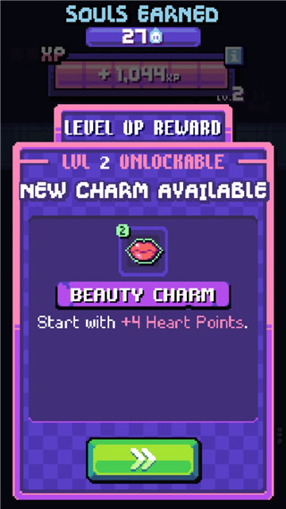 3、完成一个阶段后,玩家可以从一组随机的糖果和诅咒中进行选择,这些诅咒和诅咒将为该游戏的其余部分提供永久的权力奖励。你是否会恢复所有希望在不合时宜的死亡之前持续更久的心?或者你会为最终的力量牺牲防御?这是你的选择!