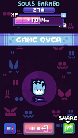5、游戏时,左上角显示每局需要打的怪兽数目,达标出大boss。右上角两个,魂和绿,打怪概率掉落。魂可以买道具魔法,绿用来升级道具魔法。