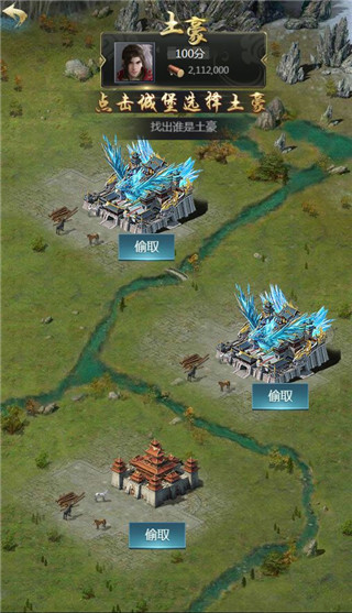 星盘中获取劫富济贫的机会,猜中土豪可以获取一定量的资源,前期君主们的主城变化不大只能各凭运气,后期君主们可以通过主城的变化精准锁定土豪,资源通通抱回家。