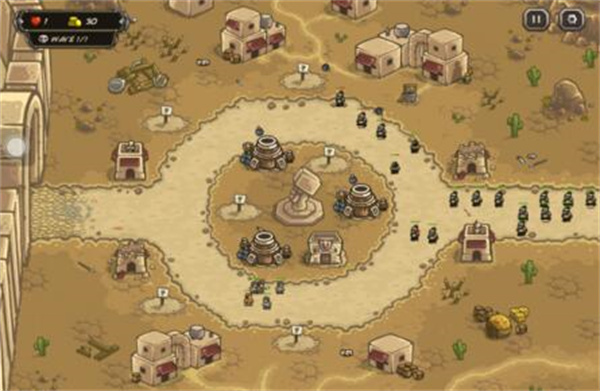 攻略:中央先造3个炸弹塔,三角排列,增援冷却即用,个别漏网的别紧张,后部有一个NPC箭塔会帮你解决,有钱了就在中央补步兵塔,先补上面或者下面,然后是后面,配合增援兵力就轻松守住了,有钱了就酌情补个炸弹塔,最后1小波敌人需要用增援兵力隔断阻挡一下即可。