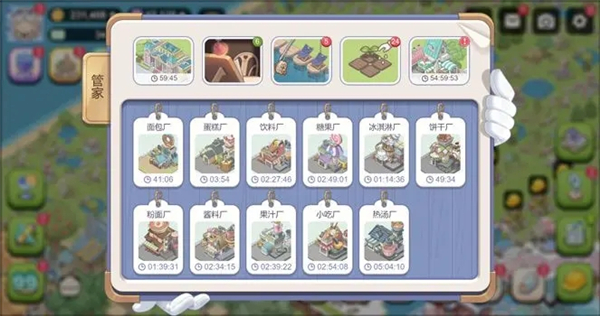 - 解锁后可以快速查看工厂生产状态、市政收益和家具制作进度。