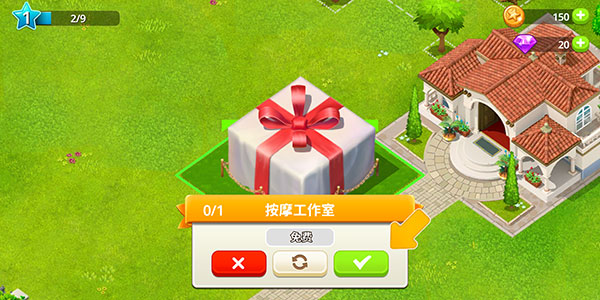 1、进入游戏之后,我们先来免费建造一个按摩工作室。