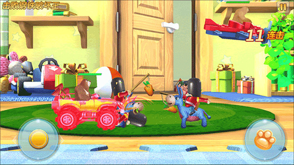5、玩家需要控制小车前进,消灭全部敌人,右边的熊爪能对敌人进行射击;