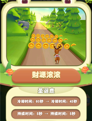 选择好人物之后,小伙伴们需要选择就是宠物了,在《熊出没2》中宠物的数量非常多,如何选择一个好的宠物也是非常必要。在这里小编给大家推荐的宠物是圣诞鹿,虽然圣诞鹿是传奇级别,获取难度较高,但是圣诞鹿却是所有宠物中性价比最高的一个宠物,专属技能财源滚滚,不但可以清理前方所有障碍物,还能够把障碍物变成金币可以说是非常实用