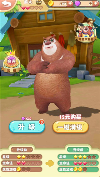 4、可以使用砖石升级熊大,提升属性,可以更好的击杀敌人,完成通关