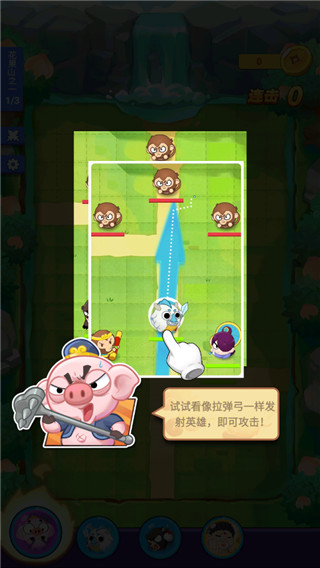 游戏特色鲜明:英雄角色取材自西游记,但变身Q版萌系形象,技能搭配多样;弹珠攻击玩法简单有趣,像拉弓射箭一样发射英雄战斗。画风清新可爱,轻松适合各种年龄段玩家,尤其是喜欢休闲娱乐和策略挑战的人群。