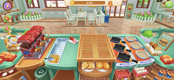 4、不断解锁新餐厅提升你的烹饪技能;闯过不同目标的关卡获得奖励来翻新和建设你的餐厅。