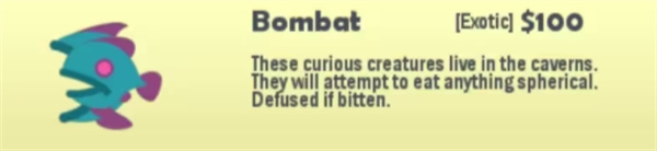 行为:挂在岩石上,但总是喜欢去咬圆形的东西,比如圆形的石头和炸弹,除此之外它们是Cave Shark的食物。