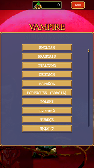 最重要的是,由于吸血鬼幸存者手机版刚进入游戏会是英文语言,但是在游戏内是可以调整为中文,因此小编也会在文章中带来详细的调至中文系统的步骤,有需要的小伙伴可以往下滑哦!欢迎大家来本站下载体验吸血鬼幸存者手游中文版!
