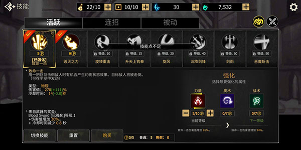 3、技能点除了通过【角色升级】的方式来获取之外,还可以使用水晶来【购买】。