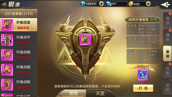 全身天罡套和地煞套装备件数达到指定数目时即可激活套装属性,获得海量属性加成!换装时套装石会全值保留的!