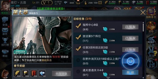 首先想要有给力的战力,就必须有领先于比较高的等级,因为等级是一切的基础,甚至很多游戏的玩法都是基于等级而一一开放的,这也就我们平时锁说的等级压制!末日围城无限内购版获取经验的方式主要有以下三种,首先便是主线任务,这类任务的给的奖励和经验非常多,对于前期的升级而言非常给力,并且顺着任务做下去,也会解锁很多新的玩法
