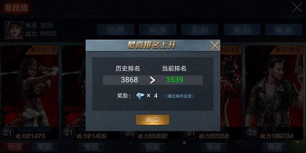 首先游戏刚开服进游戏之后,当战力提升到一定程度之后,就别先忙着打关卡,赶快去竞技场去!因为刚开服的时候竞技场排名在前面的都是机器人,不是真实玩家,所以也特别好打!这个时候就是我们赚钻石的时候了,大把的钻石在等着你,不心动吗~而且还可以拿到很多的物品奖励,这个时候不把排名打下去,以后就更没机会了,只要运气好,第一都不是梦!