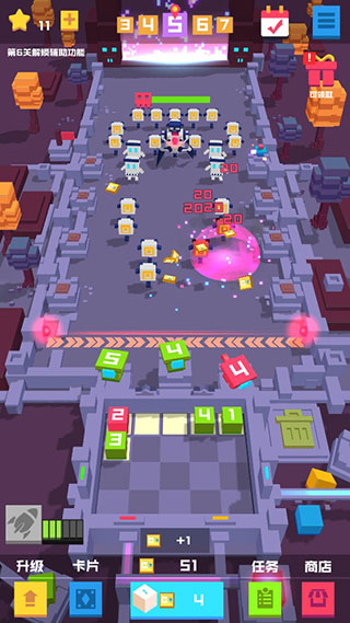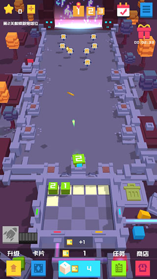 3、合成的方块越多,就能快速升级,抵御敌人,解锁新的炮台。
