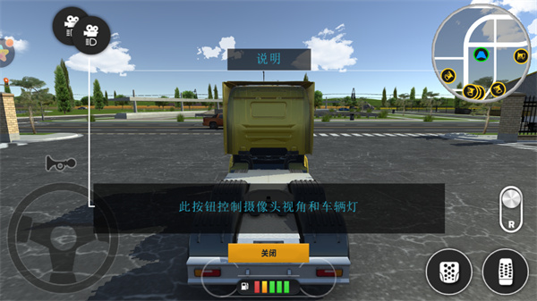 3、左上角的视角按钮可以控制摄像头的视角和车辆灯;