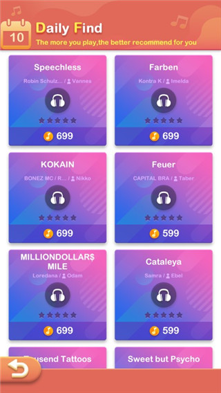 4、等级解锁钢琴曲和乐器,丰富玩法给你无限激情和乐趣体验。