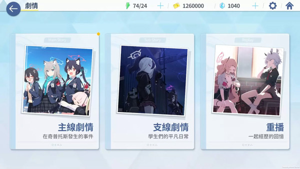 为了逐步培养学生,任务自然准备了不同的素材、资源作战让玩家可以获取。一但在这些关卡取得三星S 评价,就可以直接进行便利的扫荡作战,不消耗票券资源的方式速刷素材。而当游戏推进到后期还会解锁攻略巨大首领的「总力战」以及切磋配置与角色强度的「战术大赛」,也能获取积分代币到商店中使用。