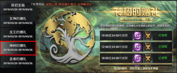 前七天每天在固定时间段登录游戏,可以在限时活动中的神树赠礼领取经验丹